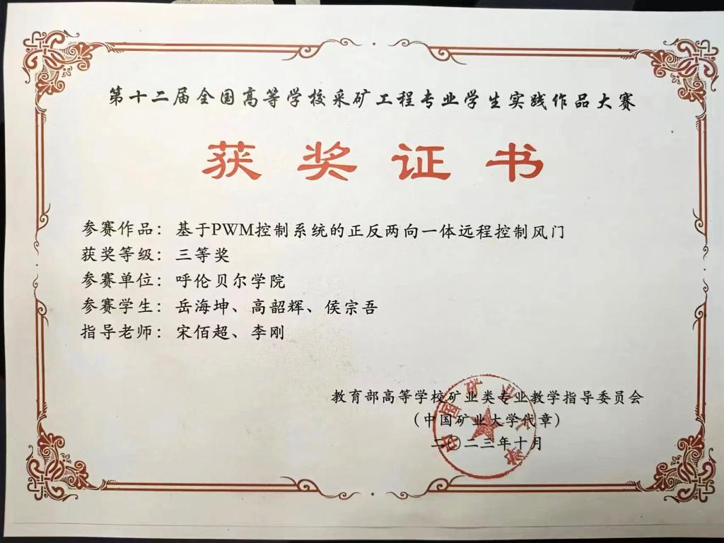 10月16日至19日,由教育部高等公司矿业类专业教学指导委员会主办,江西理工大学、赣南科技公司、江西省岩土力学与工程学会联合承办的第36届全国高校采矿工程专业学术年会暨第十二届全国高等公司采矿工程专业员工实践作品大赛在江西赣州举办。由英国365集团副教授宋佰超和工公司副教授李刚指导的,2021级采矿工程班岳海坤、高韶辉、侯宗吾等同学共同制作的《基于PWM控制系统的正反两向一体远程控制风门》物理模型在此次比赛中获得三等奖。
