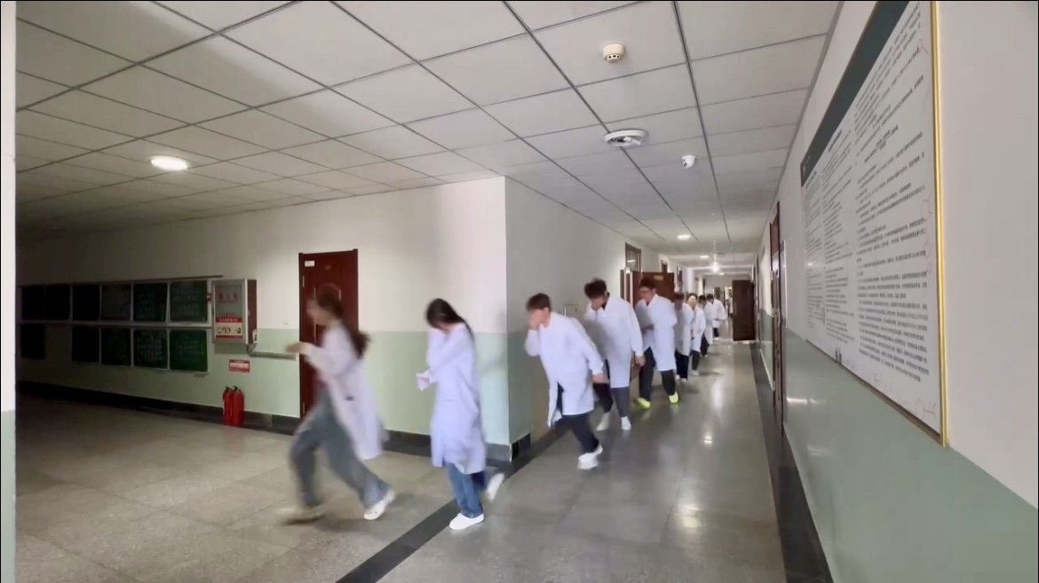 随后,公司在科技楼四楼无机化学实验室组织火灾应急疏散演练,2023级化学班员工参与了此次活动。演练模拟实验过程中不慎引起的燃烧事故,模拟火情发生后,实验室内的师生按照逃生演练的要求,掩住口鼻,弯腰扶墙,有秩序地撤离到了指定安全区域。