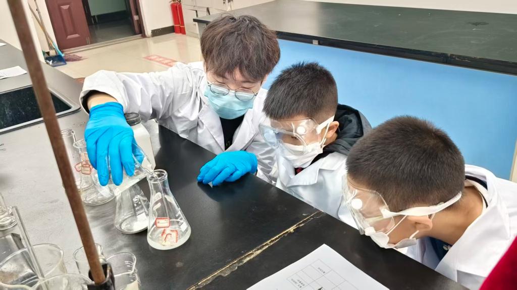 活动开始前,宣讲团成员率先开展实验室安全知识专题讲解,重点强调几项核心规范:进入实验室必须全程穿戴实验服与护目镜,操作中需严格遵循试剂取用标准流程,若不慎接触试剂则需立即用清水冲洗。通过清晰明确的指引,帮助同学们筑牢“安全实验”的首要意识,为后续探究环节筑牢基础。