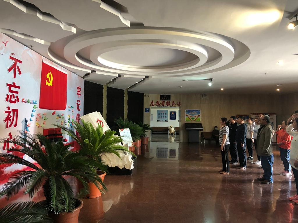 活动从入园后党员代表向抗日革命烈士纪念碑敬献花篮开始。随后,在大厅“勿忘九一八”纪念碑前全体党员举行了重温入党誓词的宣誓仪式,支部书记白春英领读誓言。全体党员面对着鲜红的党旗,高举右手,用铮铮誓言向党再次作出了郑重的承诺,以自己的一颗拳拳之心表达了身为共产党员“不忘初心、牢记使命”坚定的理想信念和为人民服务,为共产主义奋斗终身的决心。