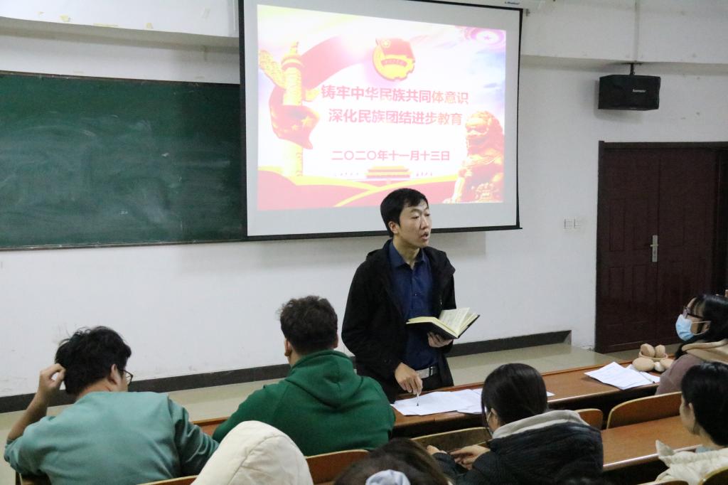 为进一步深化民族团结进步创建工作,深度挖掘传承弘扬民族团结历史文化,化学化工公司于11月13日在科技楼223召开了“铸牢民族意识共同体、深化民族团结进步教育”主题团课。团课由团总支书记主讲,2018级、2019级全体员工参加。