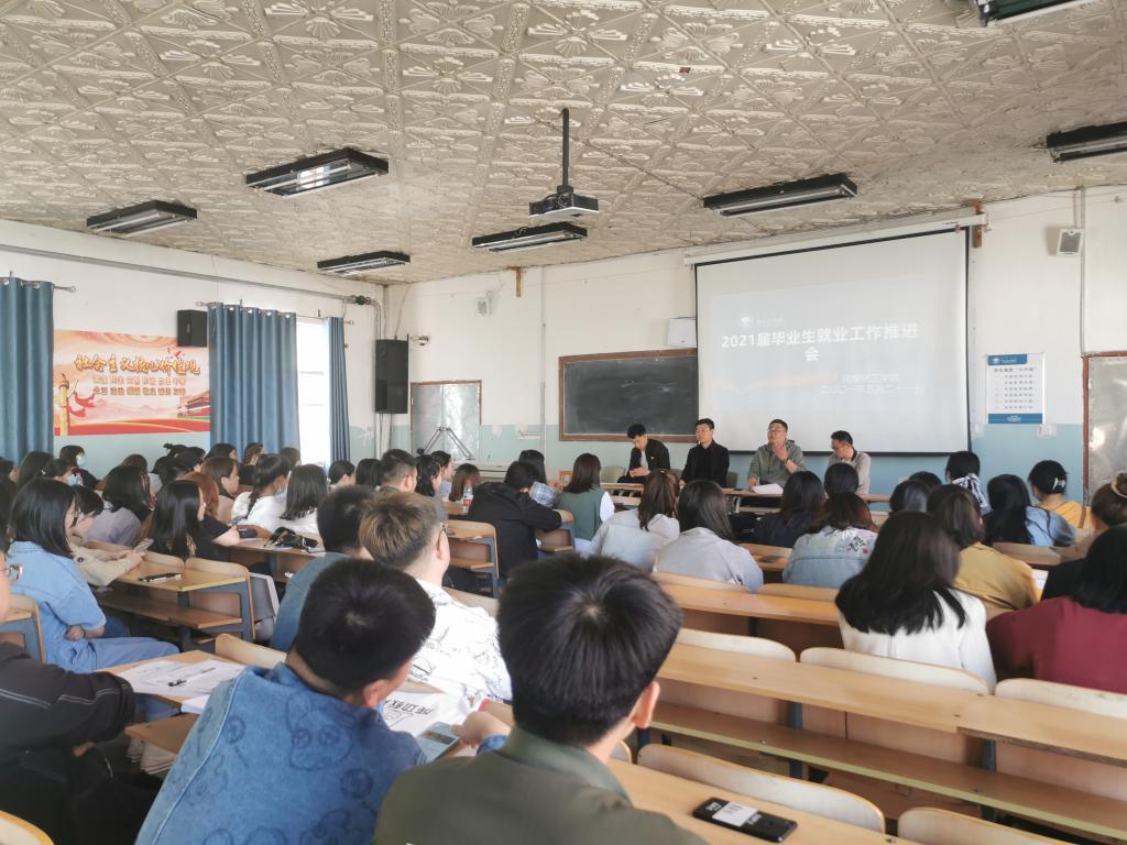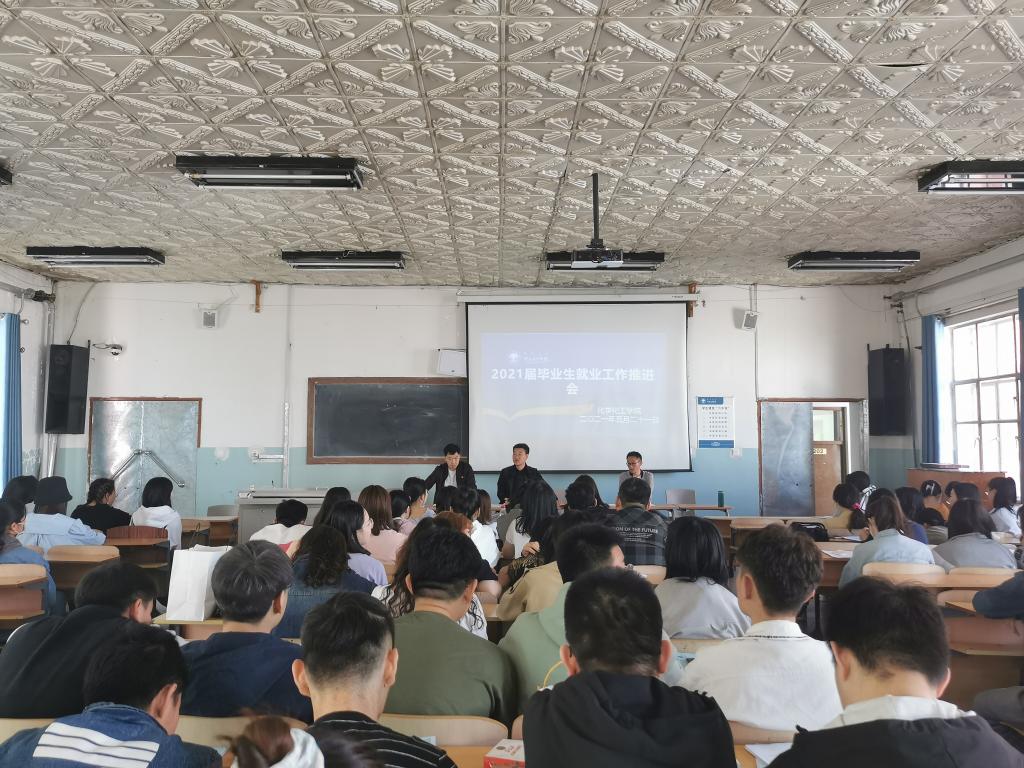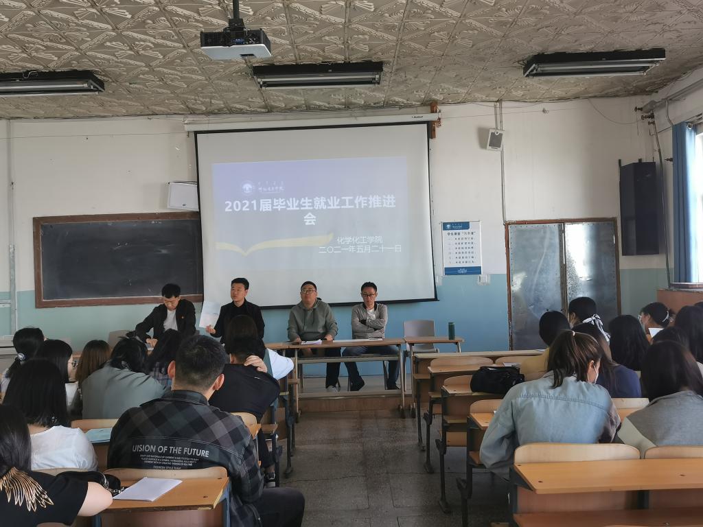 为进一步推进毕业生就业工作,进一步贯彻落实自治区和公司有关就业工作指示精神,动员毕业生积极、主动就业,化学化工公司于5月21日上午在知行楼224教室召开“化学化工公司2021届毕业生大会暨第三次就业工作推进会”,化学化工公司党总支副书记刘朋、团学办公室主任张一帆、团总支书记、2021届毕业生辅导员孟庆永、化学工程与工艺系主任胡日东、应用化学系主任赵丹出席了会议,会议由党总支副书记刘朋主持,2021届全体毕业生参加了会议。