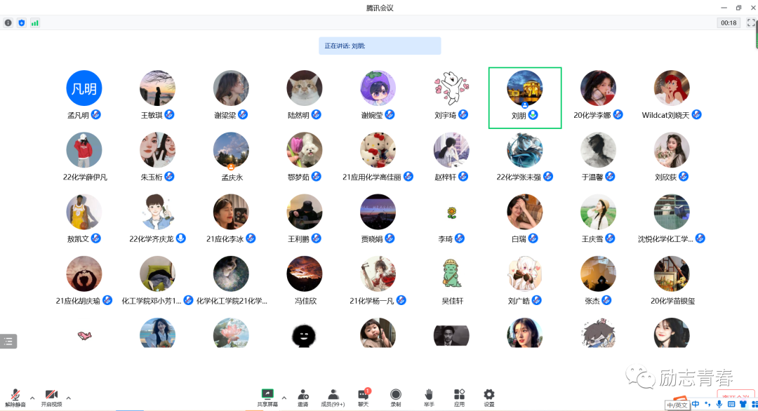 为进一步落实公司疫情防控政策,加强疫情期间员工的安全防控意识,让员工高度理解和配合好疫情防控工作安排,10月11日晚,化学化工公司召开线上疫情防控主题班会,会议由化学化工公司党总支副书记刘朋主持,团学办公室主任张一帆、副主任闫微、辅导员孟庆永、杨云晖及化学化工公司宿舍长、各班级班委会成员参会。