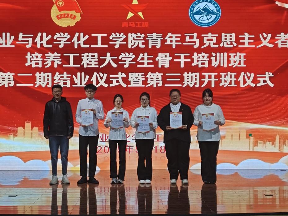 随后,主持人高鹏飞宣读第二期青马班优秀学员名单,董佳等5名学员获此荣誉。蔡庆生为优秀学员颁发证书,表彰他们在青马班学习期间的优异表现与突出贡献。